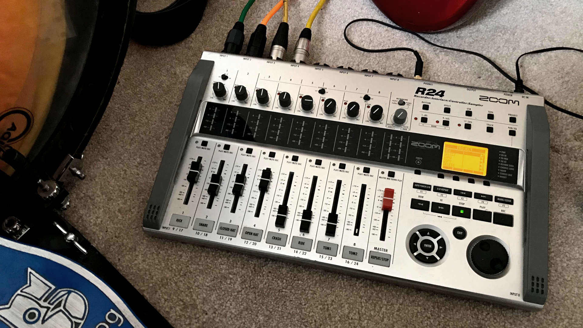 Where I’ve been recording, space is quite limited, and I don’t have a huge selection of microphones. All I’m using on the drum kit is an Audio Technica AT2020 as a mono overhead, two Sennheiser E604s for the top and bottom snare, and a Shure SM58 on the kick drum. That last mic might seem like an odd choice - especially with a dedicated kick mic on the shelf! - but it has a kind of “blocky” sounding attack which suits this situation well, compensating for the lack of “click” from dampening the drum to a neighbour-friendly volume. The point, though, is that most engineers would usually mix all four of those channels straight down the centre. And drums mixed in mono tend to sound quite thin, in quite a literal sense!